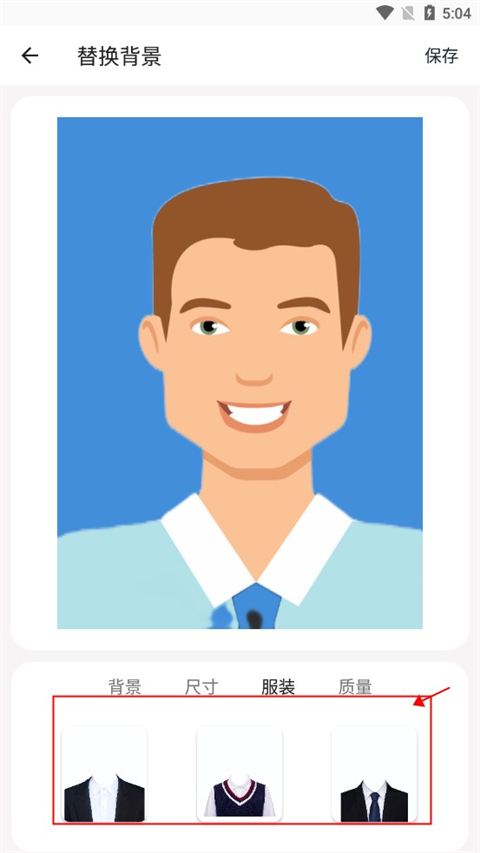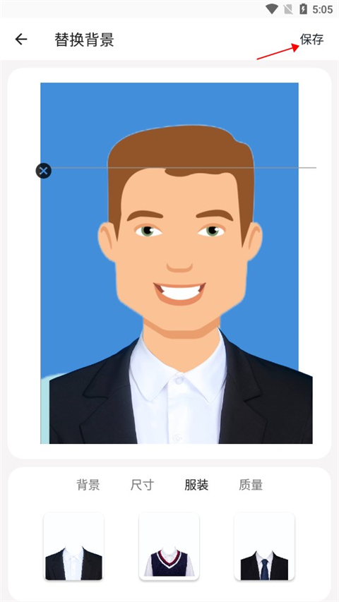 如果你希望证件照中的自己穿着正装,但当前照片中的服装不符合要求,可以使用app的换装功能。选择你喜欢的正装款式,app会智能地将正装“穿”到你身上。