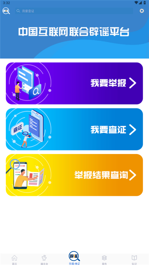 3.用户举报:用户可以通过App举报在任何一个网络平台上发现的不实信息,包括微博、资讯网站、社交平台、论坛、贴吧等。