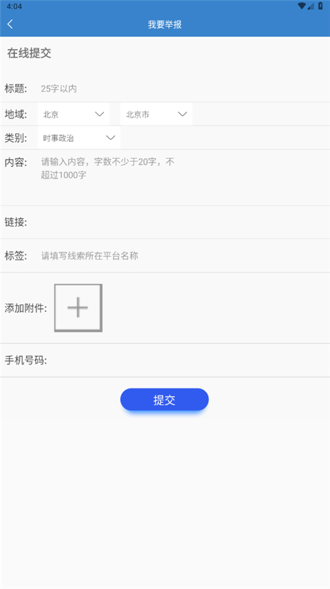 进入App后,直接点击“举报”板块,选择“我要举报”选项。