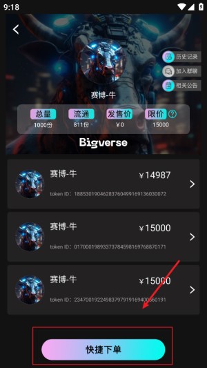 2.快捷下单:点击快捷下单按钮,系统会自动为你选取最低可购买价格进行购买。