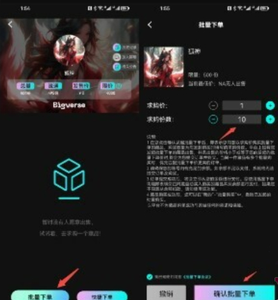 确认钱包余额充足后,点击批量下单。