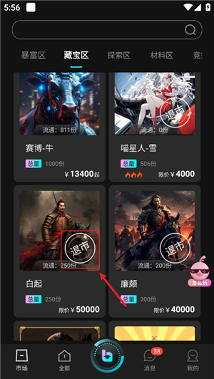 2.退市原因:为了防止金融炒作,Bigverse对藏品进行了限价。当藏品在官方限定价格内无人愿意出售时,就会显示退市状态。