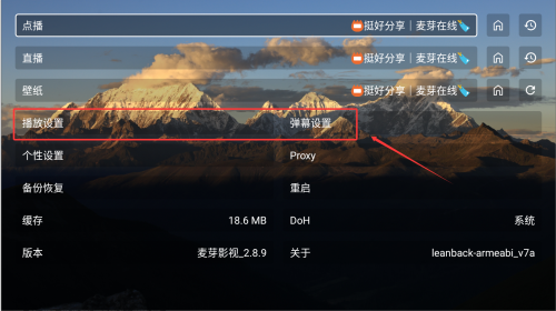 3、在设置界面,可以对播放的声音音量,弹幕等进行设置。