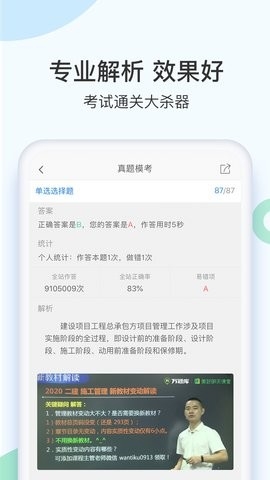 二建从业资格证必过宝宝说:建造师考试帮手;讲义和视频真是太好了,真正的建造师移动课堂;比建造师随身学天天直播广告有用多了;这里课程的质量比对啊课堂高了不是一个级别好吗