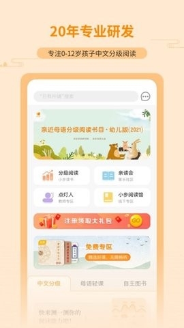 以中文分级阅读为核心,致力于为3-12岁儿童、家庭、学校提供高品质的儿童阅读与母语教育产品和服务的app。