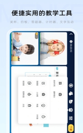 支持音视频、文本、表情、奖杯、小白板、转盘、抢答器等多元化的互动工具。