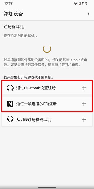 在App内选择通过Bluetooth设置注册,或者如果你的手机支持NFC,也可以选择一触连接来手动链接耳机。