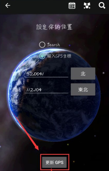 首先用户在手机上开启手机定位,然后打开星图app,允许应用使用定位权限,然后用户需要点击【更新】进行更新GPS,更新时应用会根据用户的定位信息进行自动获取坐标