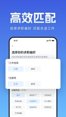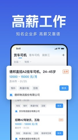 4、高效找活:每日更新万条司机、押运员、装卸工、快递员招工信息,求职者可筛选联系,也可发布找活名片曝光,提高找活效率。