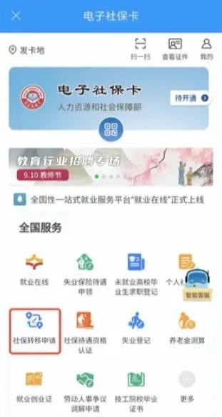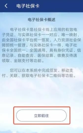 在社保卡功能页面,点击“立即前往”进入社保转移相关操作。