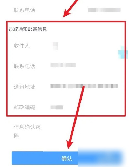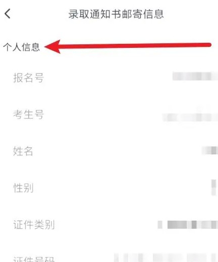 在录取通知书邮寄信息界面里,首先填写考生个人信息。