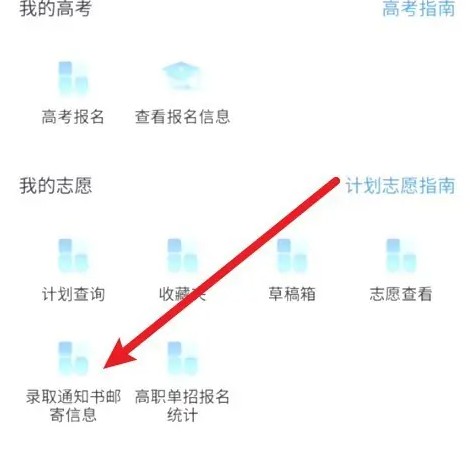 然后在app考生服务界面里,点击录取通知书邮寄信息。