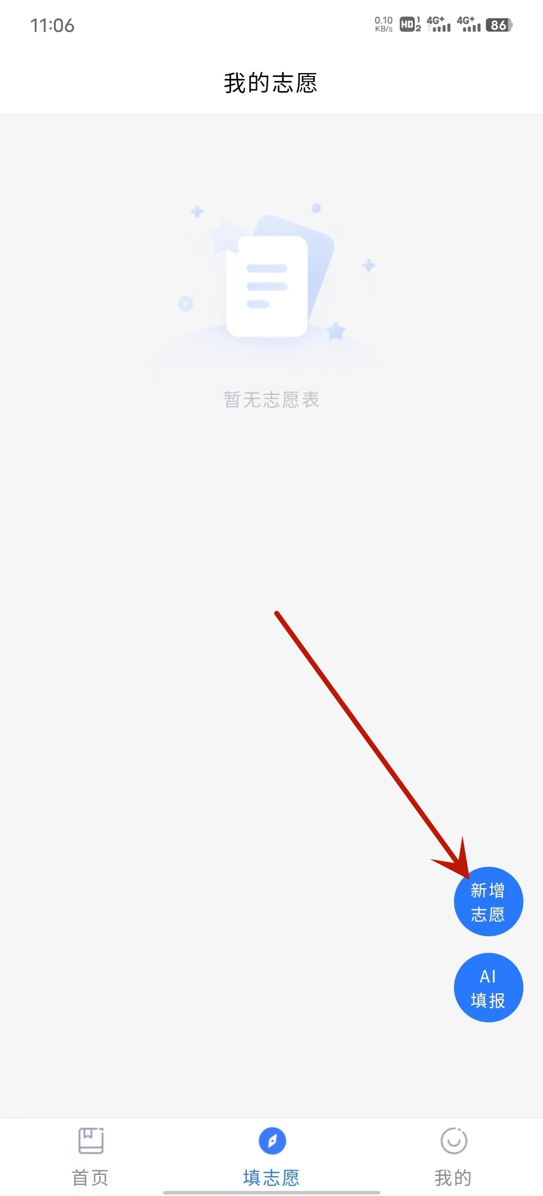 5.最后提交信息,并在主界面继续点开“填志愿”模块,点击“新增志愿”开始模拟志愿填写。