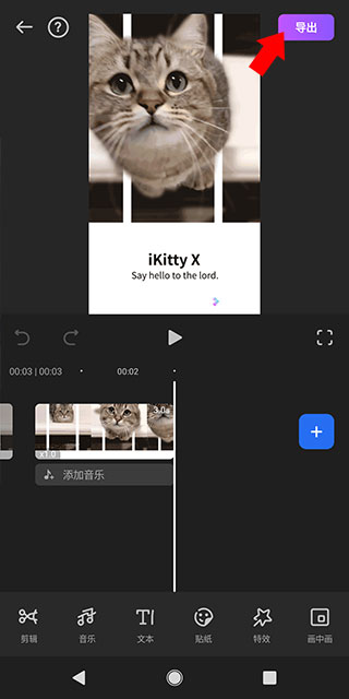 6、编辑完毕之后点击右上角即可导出视频文件
