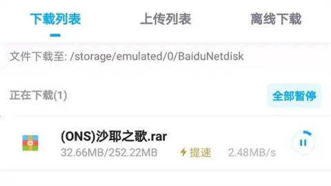 保存到网盘:选择保存到你的百度网盘,并开始下载游戏文件。