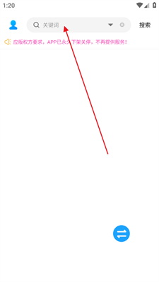1、打开软件显示是下架的状态,但是还是可以用的,点击上方搜索功能。