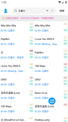 2、搜索歌手或歌词、歌曲名称查找。