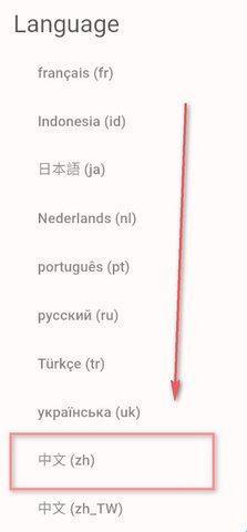 4.进入语言设置后,向下滑动列表,即可看到“中文简体”选项,选择它即可将软件界面更改为中文。若需要繁体中文,则选择下面的“繁体”选项。