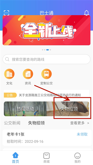 如果用户在公交车上丢失了物品,可以在app的失物招领板块查看是否有相关信息。