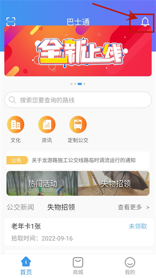 点击屏幕右上角的消息图标,即可查看收到的个人消息,如公交运营通知、优惠活动等。
