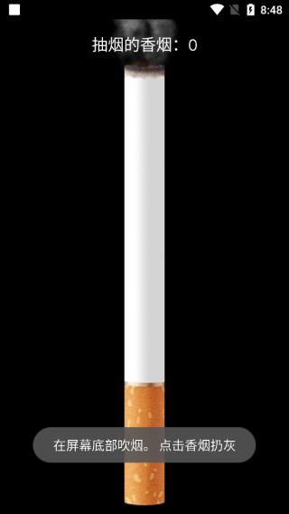 选择好香烟后,点击屏幕下方的“抽烟”按钮即可开始体验虚拟吸烟。此时,您只需对准手机屏幕底部吹气,就能看到手机中呈现出真实的烟雾效果。同时,点击香烟本身还可以模拟弹烟灰的动作。