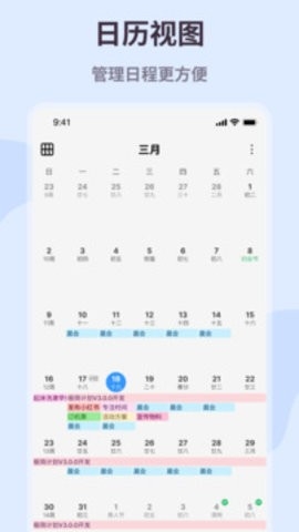 - 日历视图:直观的日历视图(月日历,周日历等)中查看日程计划。