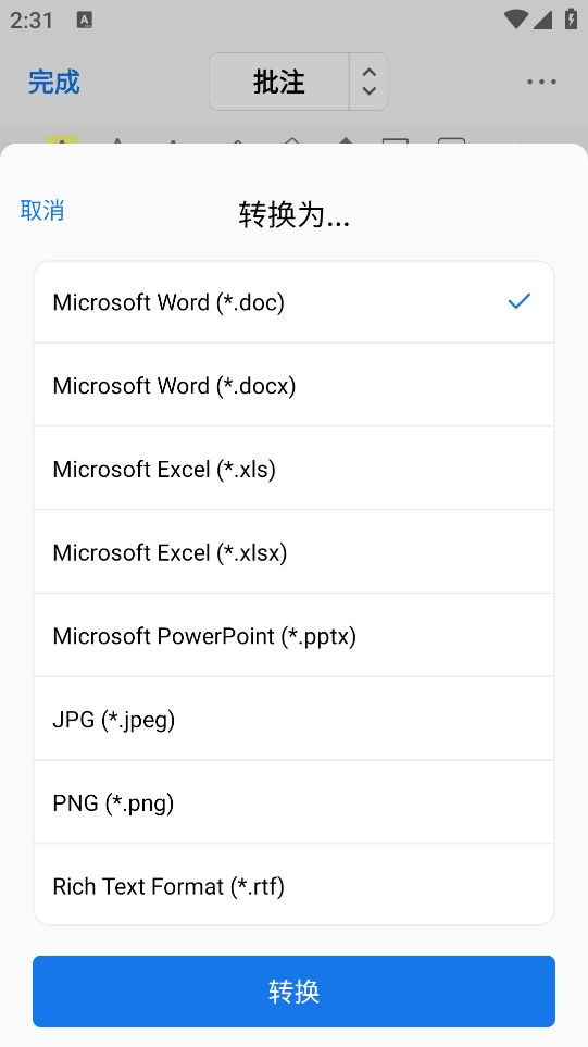 7.格式转换:点击“转换”选项,可将PDF文件转换为多种格式,如Word、Excel等。