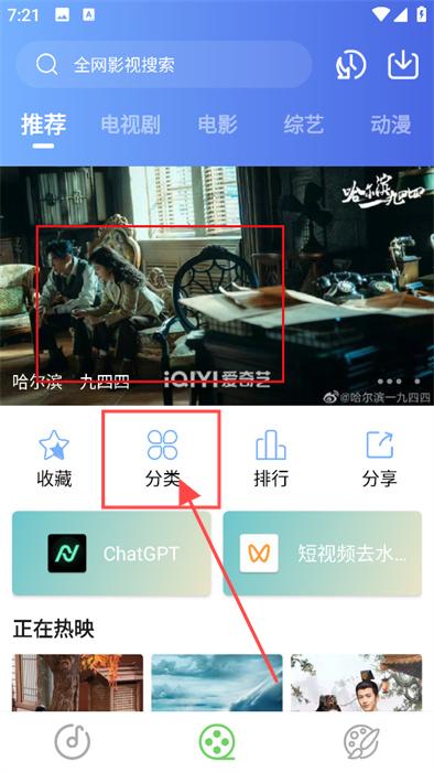 1、打开应用在首页选择想看的视频或者点击分类。