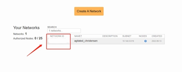 5.输入你在官网上创建的网络的16位ID。