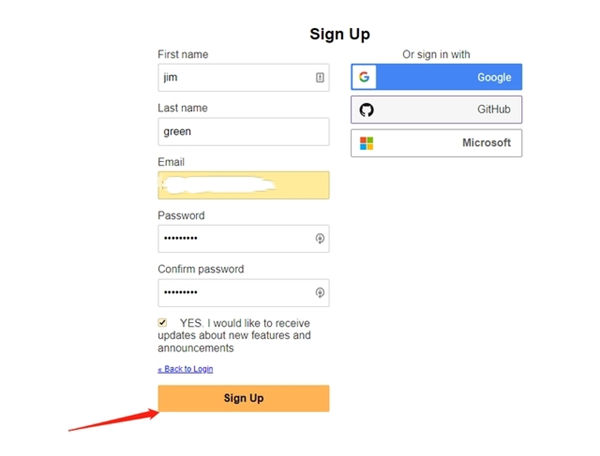 2.点击页面上的“sign up”按钮,进入账号注册页面。