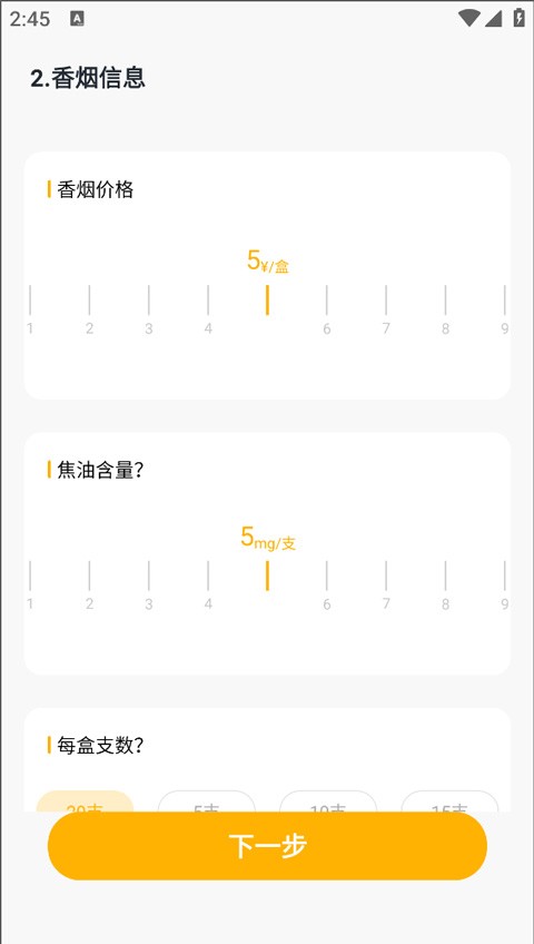 打开今日戒烟App,首先需要填写一些关于你抽烟的基本信息,比如你的烟龄、香烟的价格以及焦油含量等。这些信息将帮助App更准确地为你制定戒烟计划。