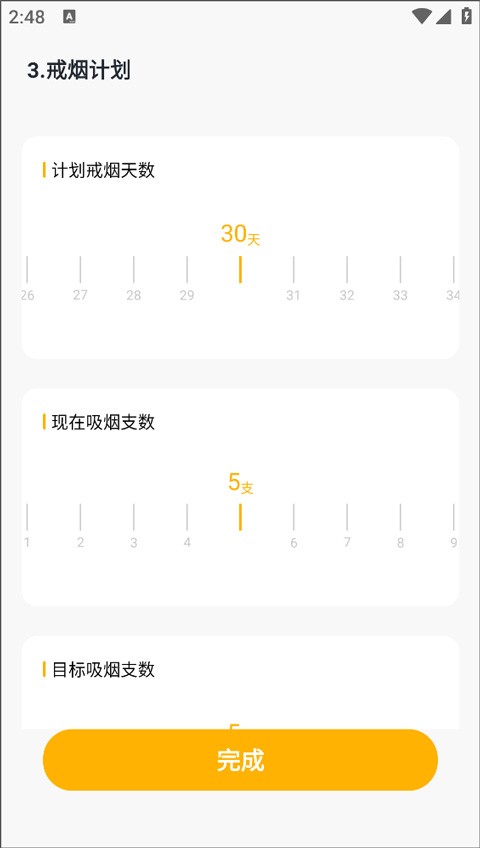 根据你填写的抽烟信息,App会引导你制定一个适合自己的戒烟计划。你可以根据自己的实际情况和目标,设定逐步减少抽烟量直至完全戒烟的时间表。