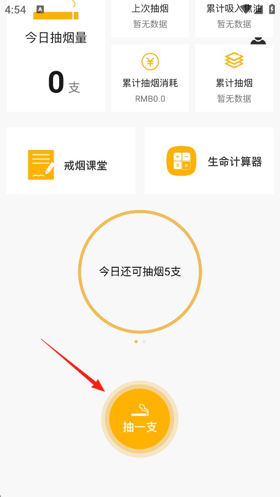 当你想要抽烟时,只需在App中点击“抽一根”按钮。点击后,对应的数据(如今日抽烟量、累计焦油量等)会自动更新,并直观地展示给你。这样,你可以更清楚地看到自己的抽烟行为,从而增强戒烟的意识。
