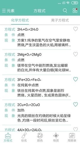 化学方程式十一开你那非常实用的对于学习化学的软件。在软件上具有非常多的化学方程式供用户们进行学习,而且在软件上化学方程式的解释在软件上也具备,解释每个化学方程式的意义,软件的功能也是非常的强大,让用户们可以很好的学习化学,感兴趣的可以下载。