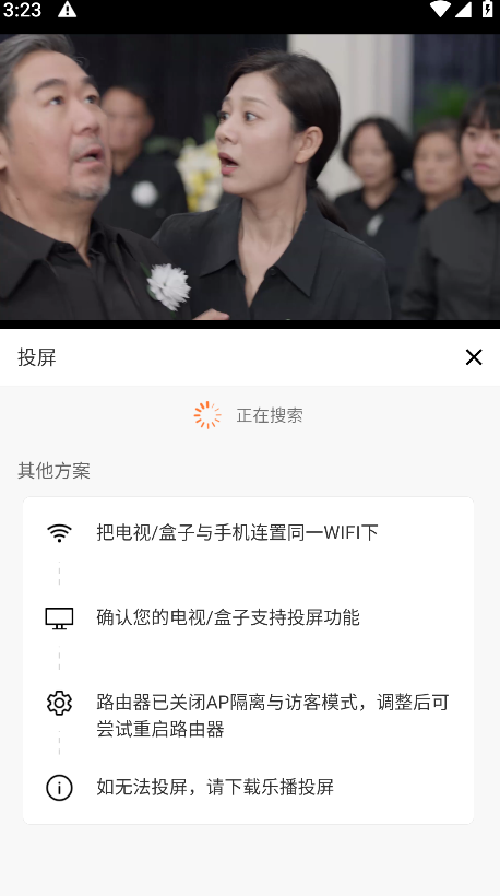 3.把电视/盒子与手机连接在同一个WiFi下,点击下方搜索到的投屏设备开始投屏即可。