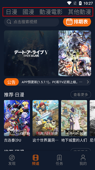 2、页面上方拥有一个菜单栏,对庞大的资源库进行了分类管理,包括日漫、国漫、动漫电影、其他动漫,方便大家通过筛选快速找到心仪的动漫。
