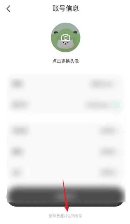 在账号信息主页的底部,找到并点击“删除数据并注销账号”选项。