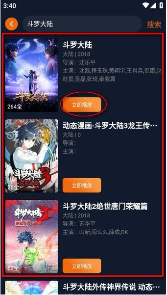 3、一般搜索都会出现多个结果,尤其是系列比较多的,选择要看的动漫,点击“立即播放”;