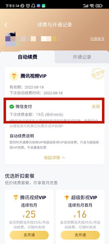 4、进入【续费管理开通记录】后,找到你所对应的支付渠道,例如【微信支付】,点击后面的【关闭】就可以了。