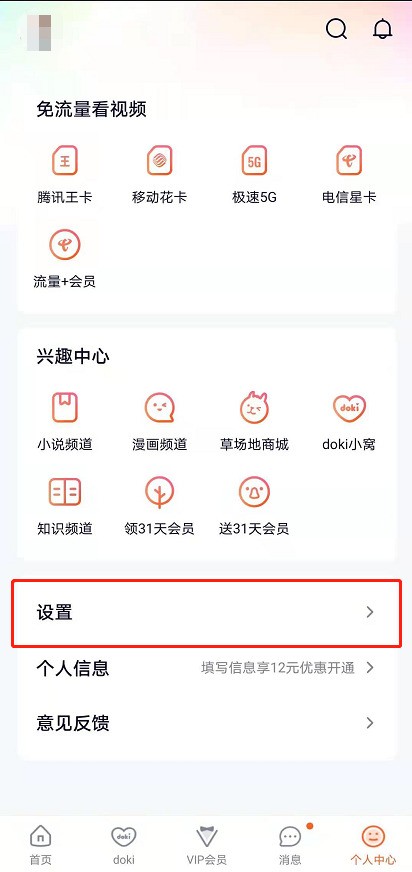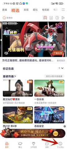 2、在【个人中心】界面找到【视频VIP】,点击打开。