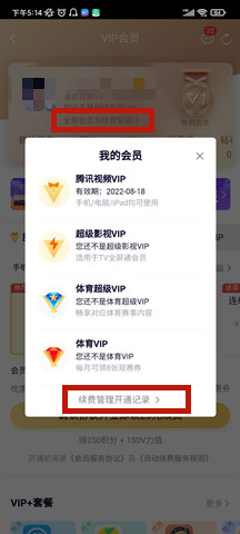 3、点击【全部会员与续费管理】,之后点击页面中的【续费管理开通记录】。