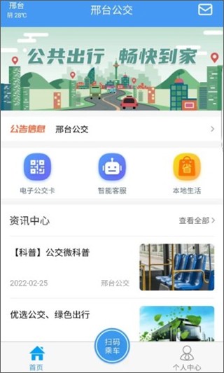 进入app后,你会看到首页上有几个主要功能:电子公交卡、智能客服和本地生活。