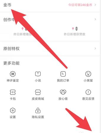 打开皮皮虾APP,点击底部我的图标,进入我的页面,点击金币