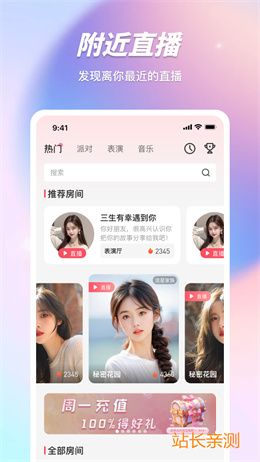 高清互动直播体验平台,各种新功能,召集各式才艺主播,直播间要你好看!