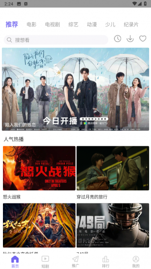3、用户可以随时看热播电影、电视和动漫,超清画质无广告,给用户带来更好的追剧体验感,完全免费。