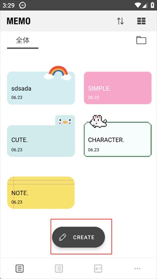 点击界面中的【CREATE】(或类似的新建按钮),开始输入你想要记录的内容。