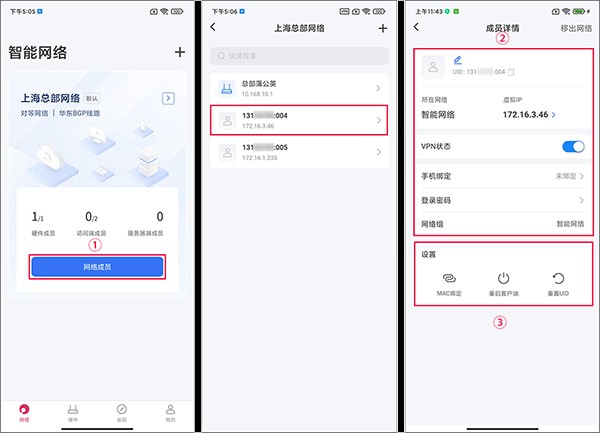 2.查看详情:在成员详情页面,可以查看UID、VPN状态、绑定手机等信息。