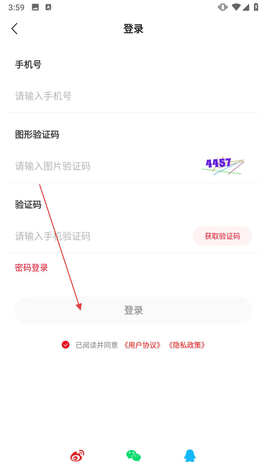 1、在APP登录弹窗点击【手机号登录】进入登录页面。