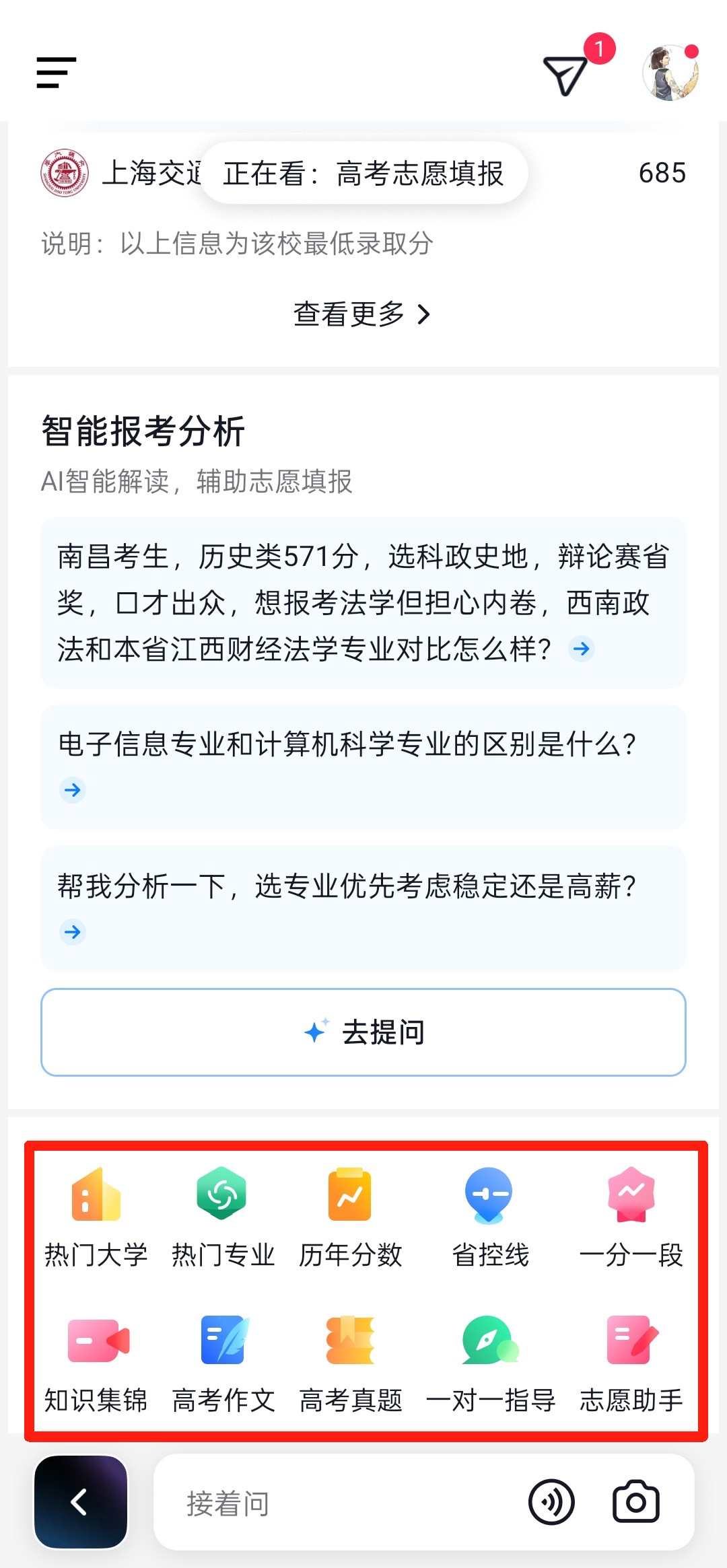 3.获取建议:AI抖音会根据你的搜索,为你提供个性化的志愿填报建议。你可以选择直接进入志愿填报网站,或者先利用预测功能来探索最佳志愿选择。