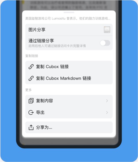 -你可以生成Cubox链接分享已解析排版的文章,包含你的个人标注和见解。分享可以随时停止或恢复。